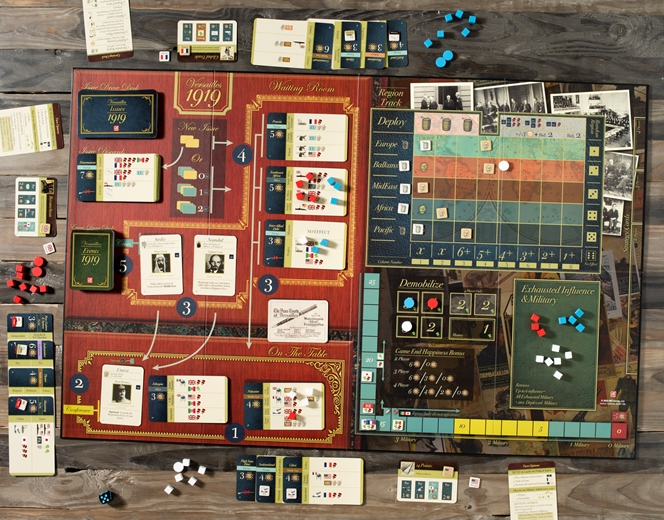 Versailles 1919, created by designers Mark Herman and Geoff Engelstein, allows you to experience this piece of history as one of the four leaders with a national agenda that must be satisfied.